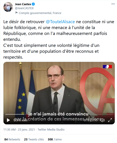 Nouvelle preuve, s’il en fallait encore une, que l’Alsace par ses orientations politiques, ses champs d’intérêt, ses réflexes, est bien tout à fait française, parfaitement apprivoisée et assimilée. Lors du match France-Allemagne de la coupe d’Europe, les fans clubs alsaciens ont vibré pour les Bleus. De même, lors du match avec la Suisse, jusqu’au dernier souffle. L’adhésion, le sentiment d’appartenance des Alsaciens à la France est une évidence sensible en toute occasion. Républicains et Patriotes divers seraient donc mal venus de les soupçonner de tendances séparatistes !